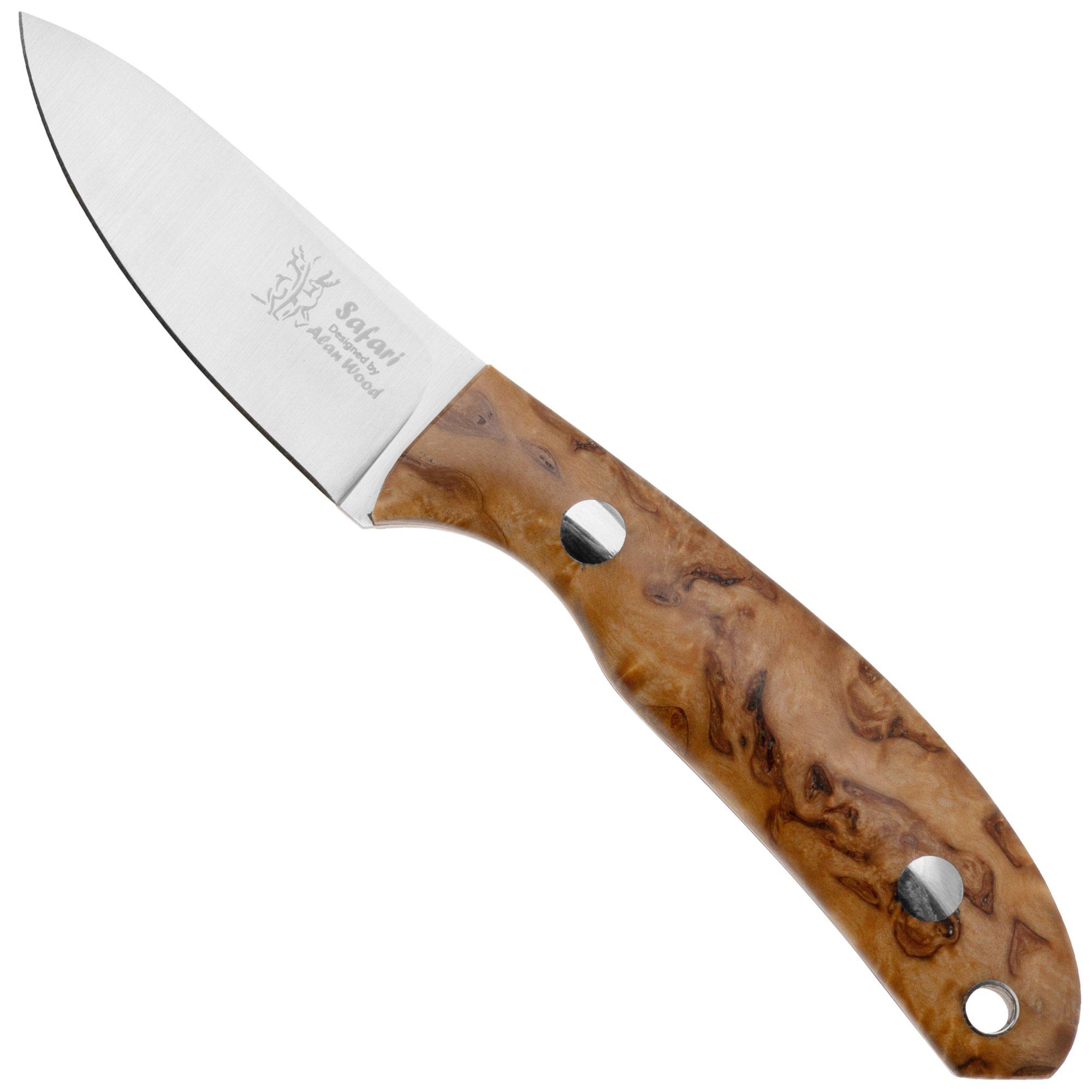 Casström Safari Mini Hunter 11618, Stabilised Curly Birch Kydex, cuchillo fijo, Alan Wood design