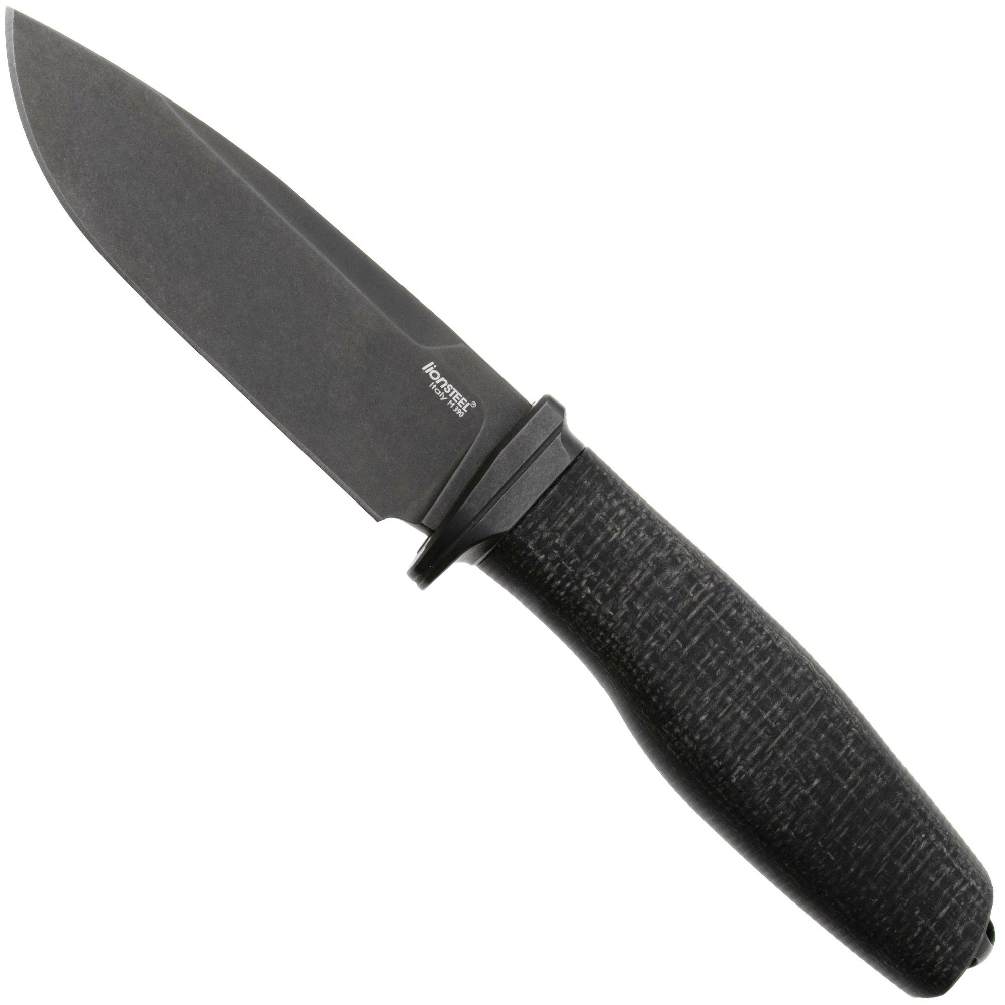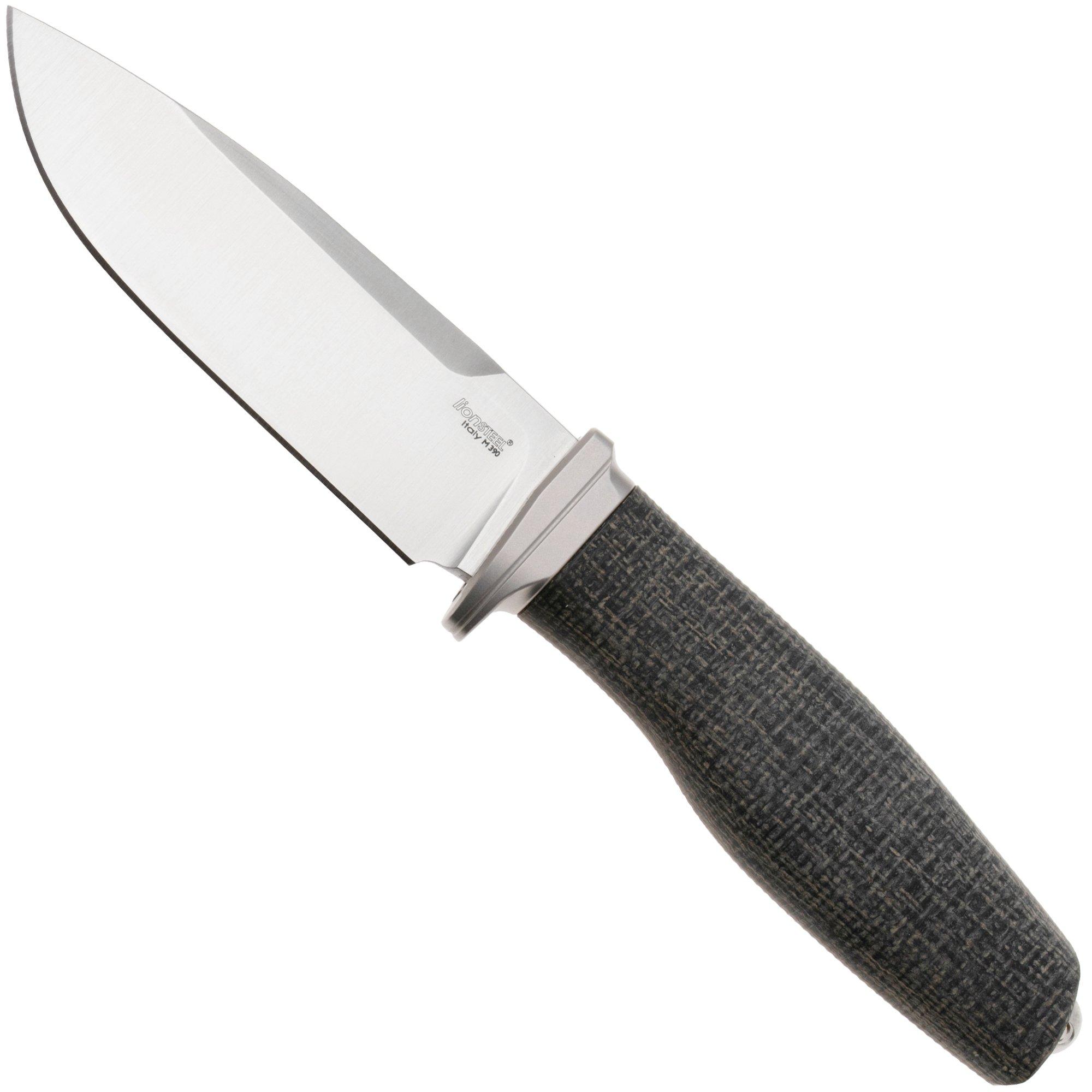 LionSteel Acha AH BLB Satin M390, Black Burlap Micarta, Titanium Guard, cuchillo fijo