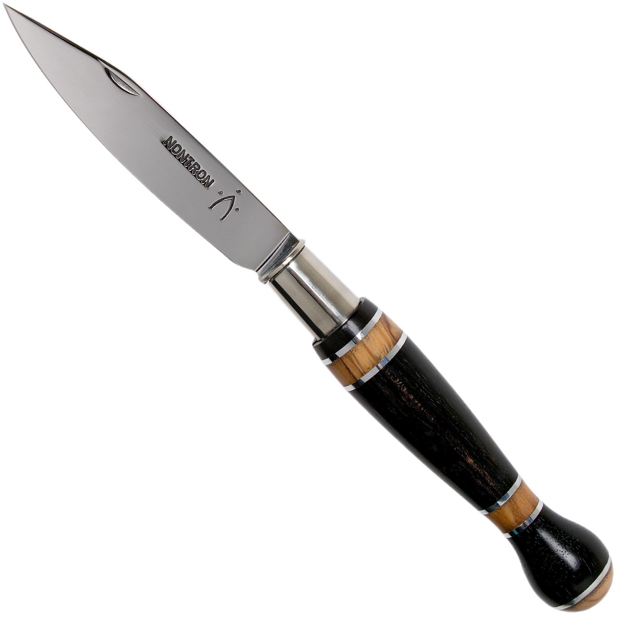 Nontron No. 25 Nickel Silver Turning Ferrule, Marquetry Ebony Olivewood, forma de bola NN25BOEBOL navaja